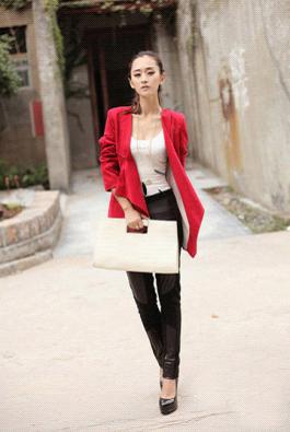 Bright red colour of the business suit, improved edition soft, slightly apeak quality of a material, send out a very sweetfeeling. Delicate clipping style, very fashion, the color is quietly elegant, manifests the sweet and relaxed fair maiden breath.